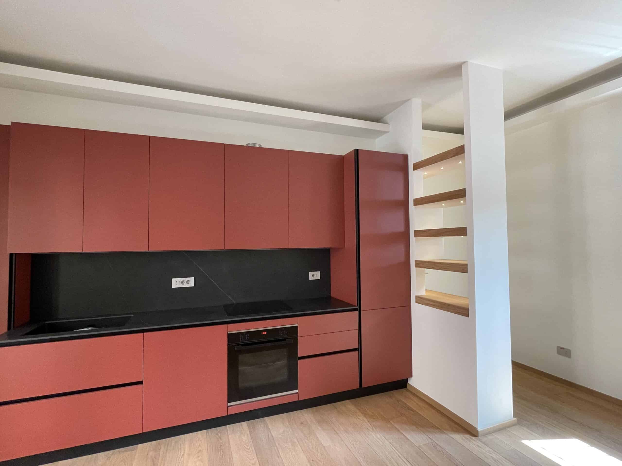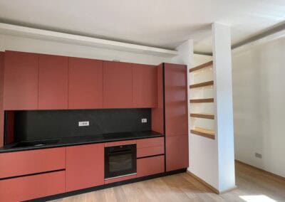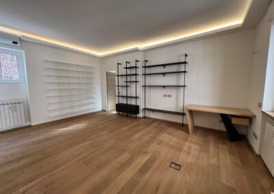 PROGETTI MILANO, VIA OSOPPO Intervento di ristrutturazione completa dello studio, dell’ingresso e della cucina con posa parquet in legno massello in Via Osopppo, Milano.